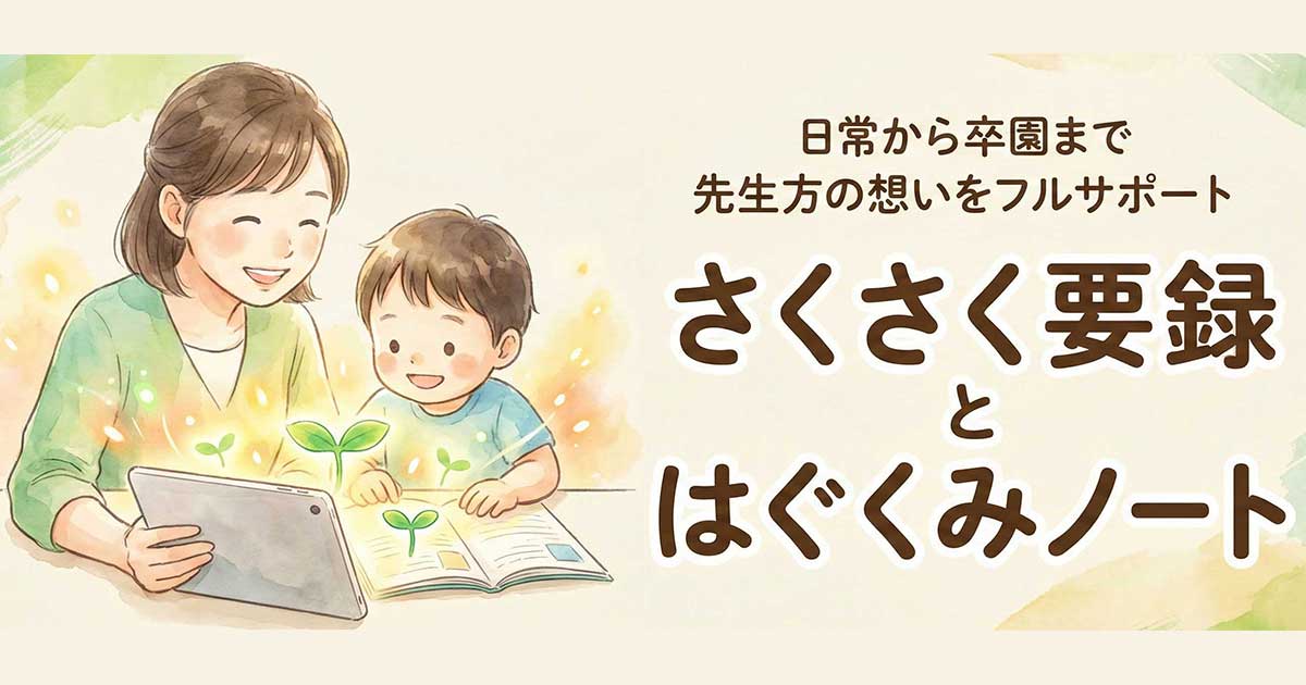 「さくさく要録」と「はぐくみノート」は、日々の保育で積み重ねた一人ひとりの成長記録を整理し、先生による要録の作成を丁寧にサポートする仕組みです。